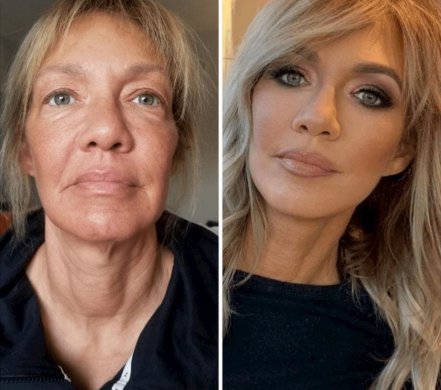 — Las reglas clásicas que habrás escuchado innumerables veces: un buen sueño y una alimentación adecuada, pero sería una mentira si te dijera que es suficiente. Mi marido es un especialista licenciado que trabaja en colaboración con laboratorios. Hace unos 10 años, fue el primero en desarrollar una fórmula rejuvenecedora llamada Inno Gialuron Expert . Yo fui la primera voluntaria en participar en los ensayos clínicos. En ese momento, tenía 37 años y, por supuesto, ya tenía arrugas, manchas pigmentadas, etc.